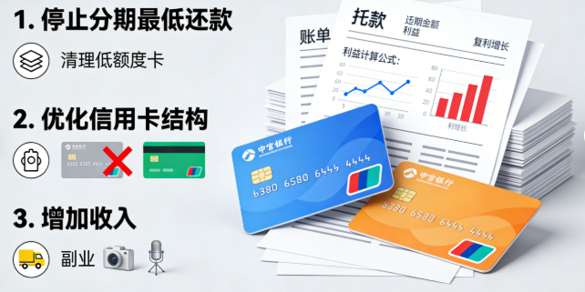 60 浏览信用卡负债越来越多,工资几乎全用来还利息,每天都在为还款发愁,这种“拆东墙补西墙”的日子,你是不是也受够了?别担心,今天分享的三步自救法,能帮你快速摆脱负债泥潭,重获财务自由。